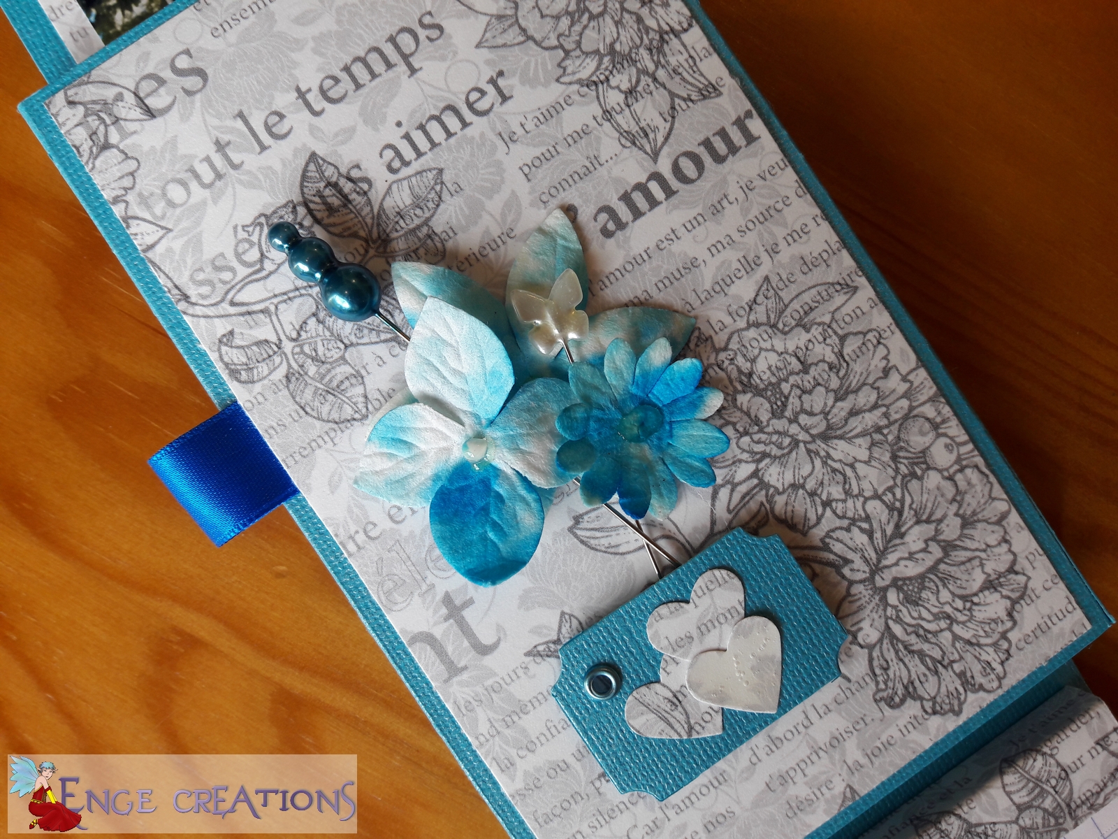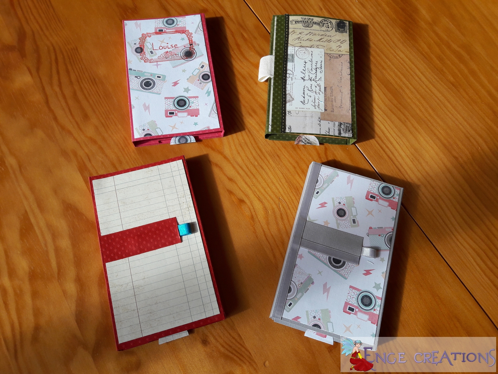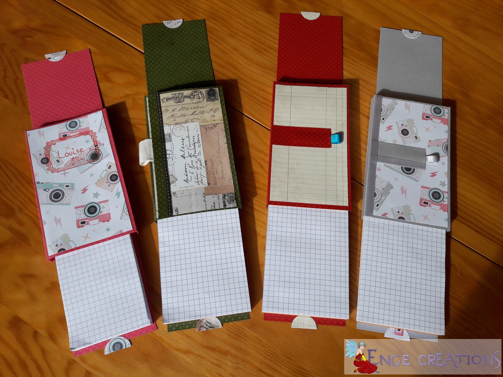 Mardi soir, Céline, d’Ithylia Créations se lançait à son premier tutoriel vidéo en direct : un bloc-notes façon Ithylia Créations, soit l’habillage d’un petit bloc-notes, accompagné d’une petite page surprise. J’étais aux premières loges, et j’ai d’abord réalisé une première version. Une de mes amies voulait suivre le tuto en direct, mais n’a pas pu, j’ai donc proposé une petite après-midi scrap. Et c’est avec Mini-Enge et deux amies que nous avons réalisé chacune une autre version du bloc-notes selon Ithylia Créations.